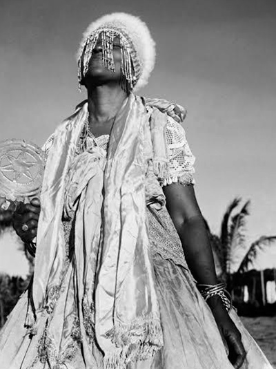 Servimos principalmente à mãe Iemanjá, canjica branca cozida, misturada com salsinha e refogada com azeite comum, podemos enfeitar também com quatro merengues, ofertamos também ovelhas de pelagem branca, galinhas e pombos brancos e peixes pintados.