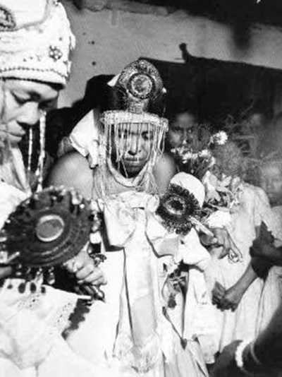 Servimos principalmente à mãe Oxum, canjica amarela cozida, enfeitada com quatro quindins, em obrigações grandes, acrescentamos outras comidas, como por exemplo o Omolokún, ofertamos também cabritas e galinhas amarelas, pombos brancos e peixes pintados.